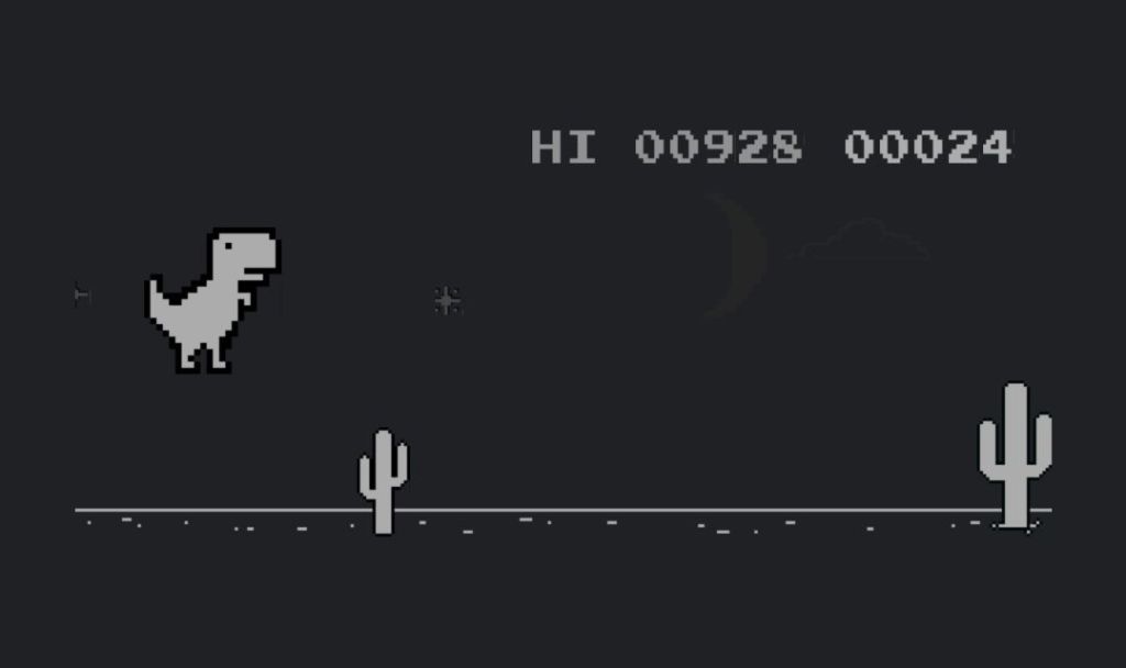 A més, el joc no té nom. No el pots cercar apropiadament. Es “el joc de quan et quedes sense internet al chrome”.